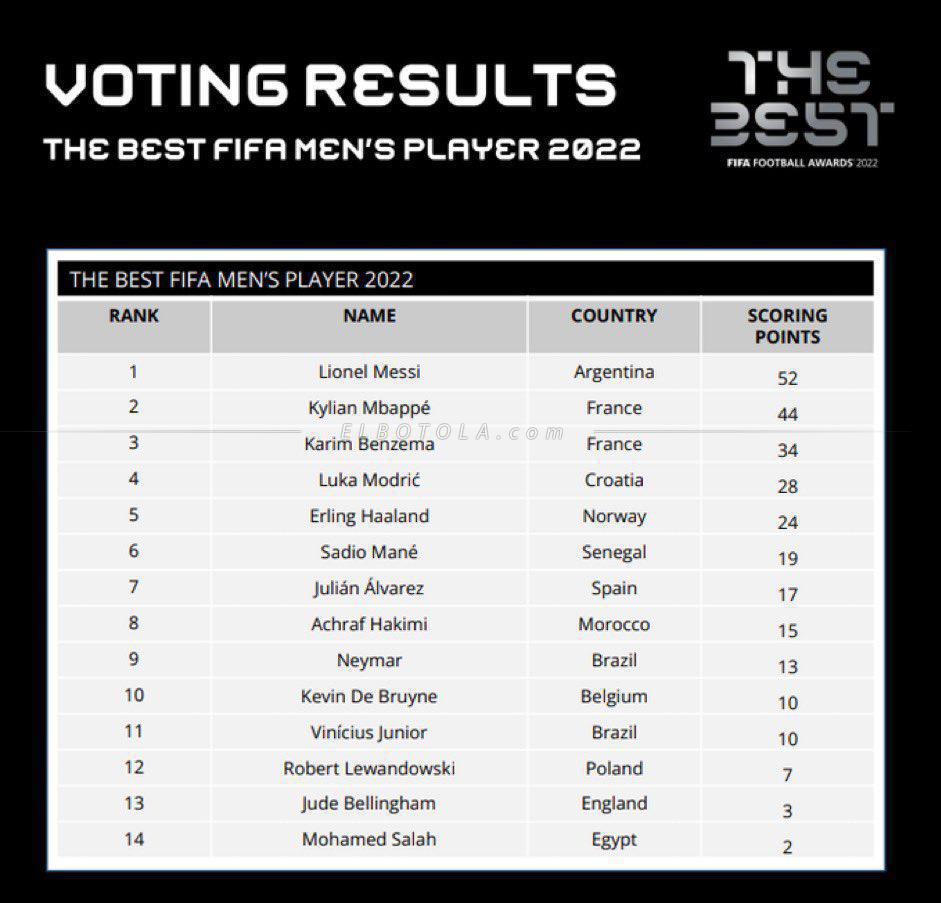 هذا وتواجد النجم السنغالي، ساديو ماني، في المركز السادس، كأفضل تصنيف للاعب أفريقي في حفل جوائز الفيفا لسنة 2022.