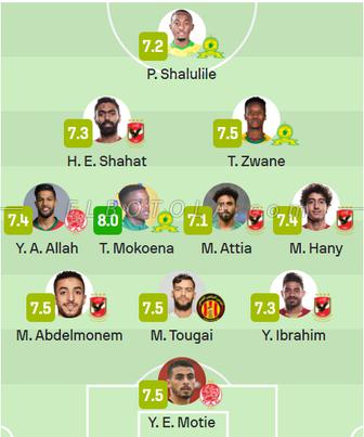 وشهدت التشكيلة حضور 5 لاعبين من الأهلي المصري، و3 لاعبين من ماميلودي سان داونز الجنوب أفريقي، بالإضافة إلى لاعب واحد من الترجي التونسي.