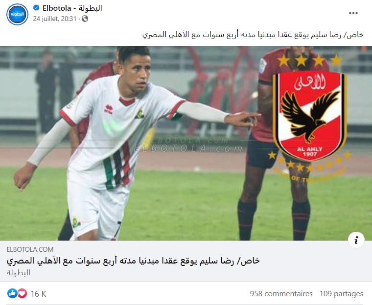 تأكيدا لسبق "البطولة"، أعلن نادي الأهلي المصري، مساء يومه الإثنين، عن تعاقده مع اللاعب المغرب رضا سليم، قادما من فريق الجيش الملكي.