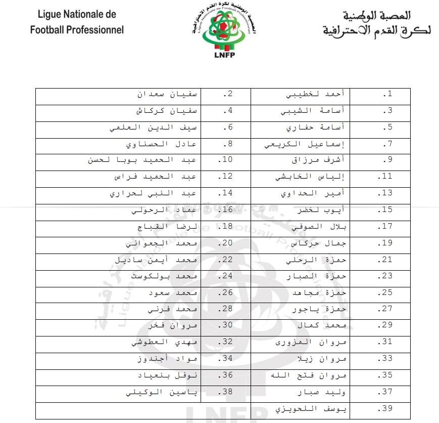 وفيما يلي لائحة اللاعبين الذين تم تسريحهم من طرف اللجنة:
