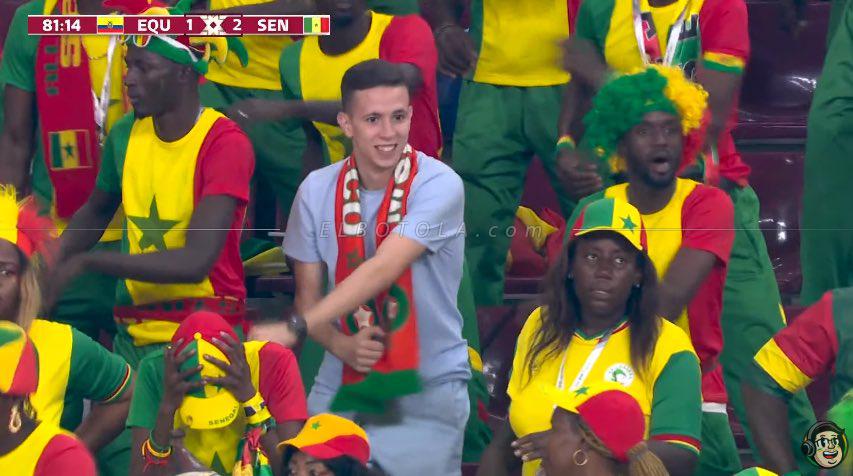L’Afrique unie, dans la défaite comme dans la victoire, c’est toujours beau à voir. Aujourd’hui, cela l’a été dans la victoire, celle du Sénégal face à l’Equateur où on a pu apercevoir un supporter marocain présent au niveau du parcage réservé aux sénégalais. Africa Unite !